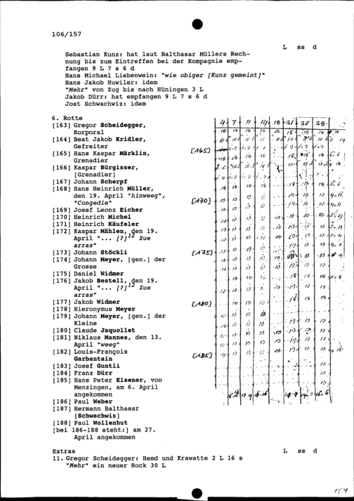 Mannschaftsrodel der Kompanie von Beat Jakob II. Zurlauben im Regiment Pfyffer, verfasst...