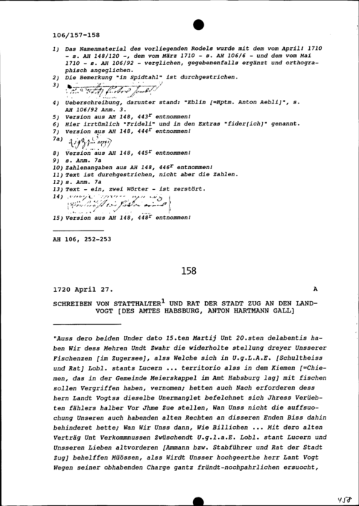 Schreiben des Statthalters und Rats der Stadt Zug an Anton Hartmann Gall, Landvogt des Amts Habsburg
