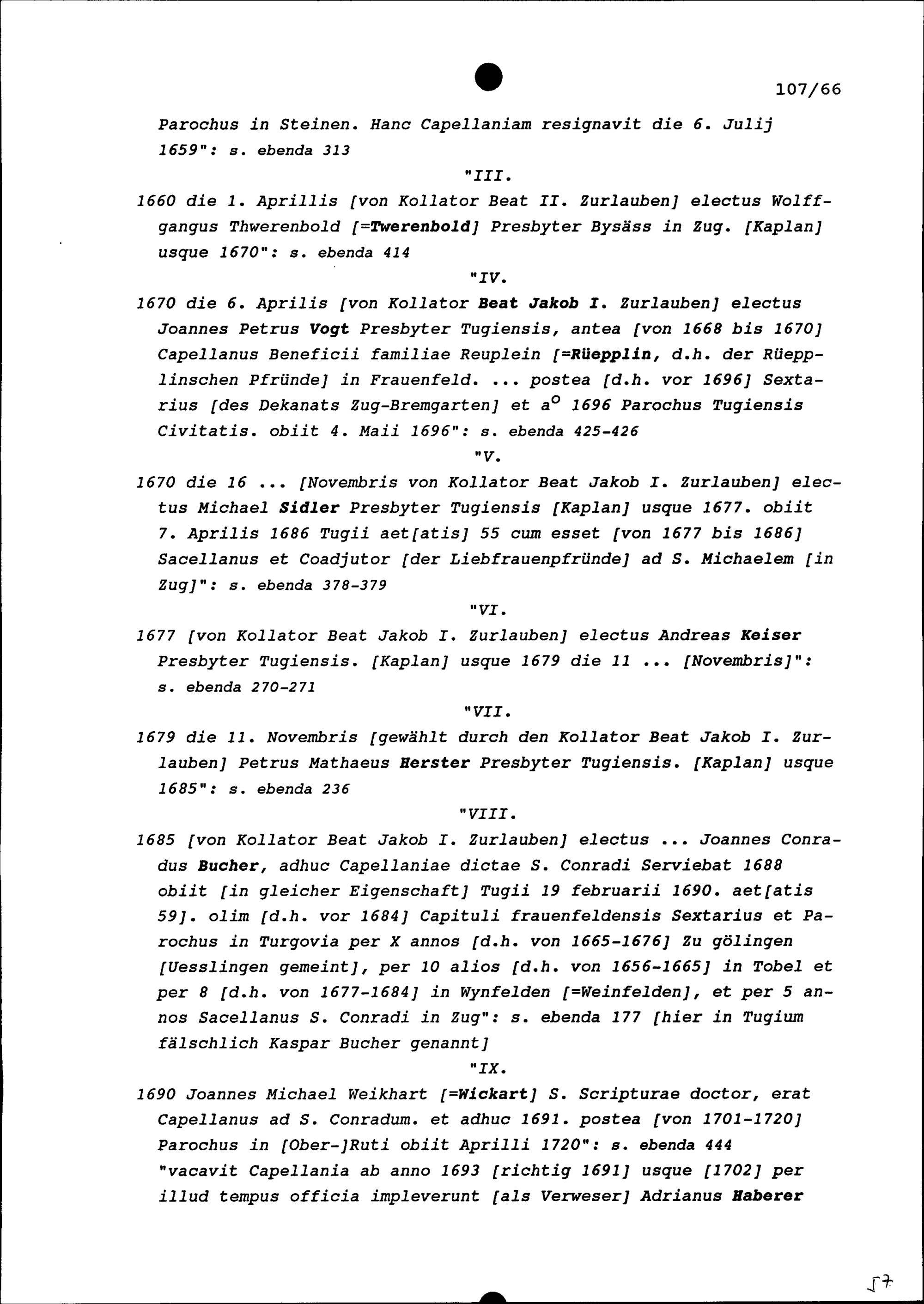 Kapläne an der zurlaubenschen Sankt Konradspfrund in Zug erstellt von Beat Fidel Zurlauben