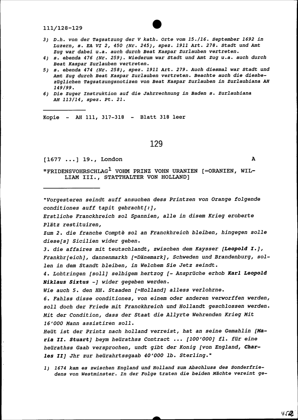 Vorschlag für einen Frieden von William III., Prinz von Oranien, Statthalter von Holland