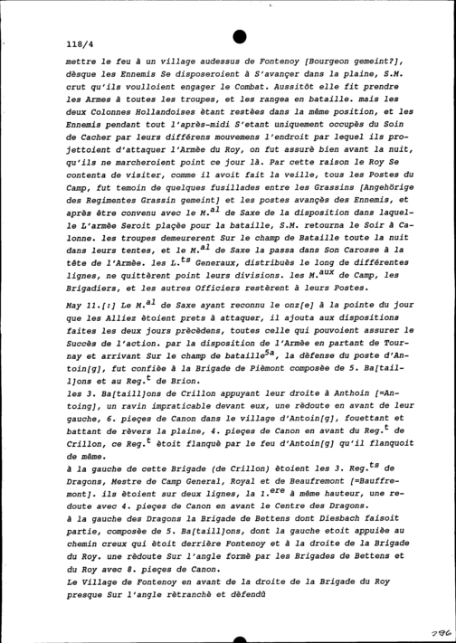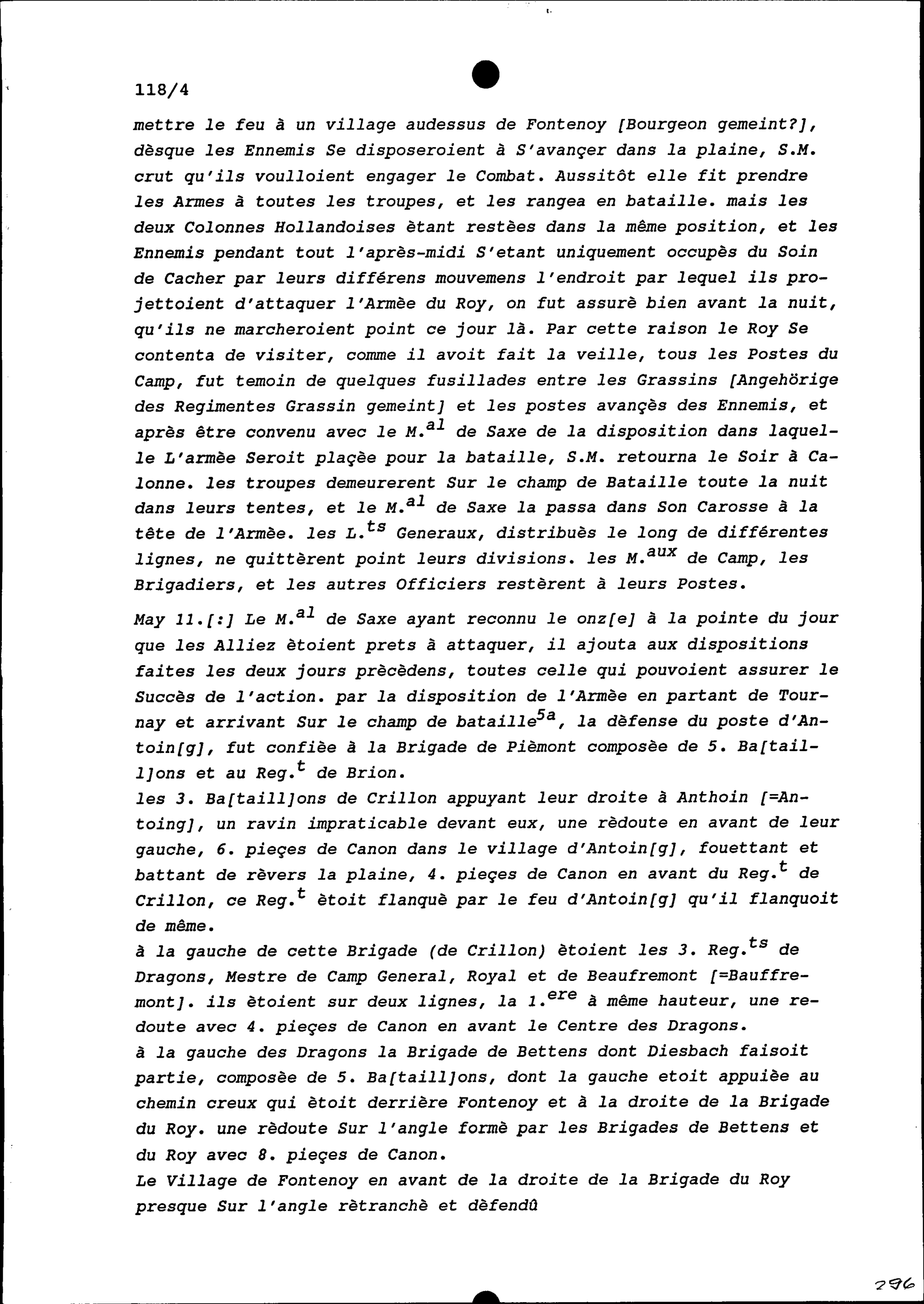 Ausführliche Chronik der Felddienste von Ludwig XV., König von Frankreich, in Flandern, im Krieg zwischen Frankreich einerseits und Österreich, Holland und England anderseits), aufgezeichnet von Beat Fidel Zurlauben, Hauptmann