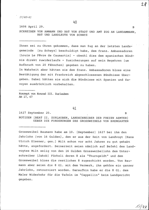 Schreiben des Ammanns und Rats von Stadt und Amt Zug an Landammann Rat und Landleute...