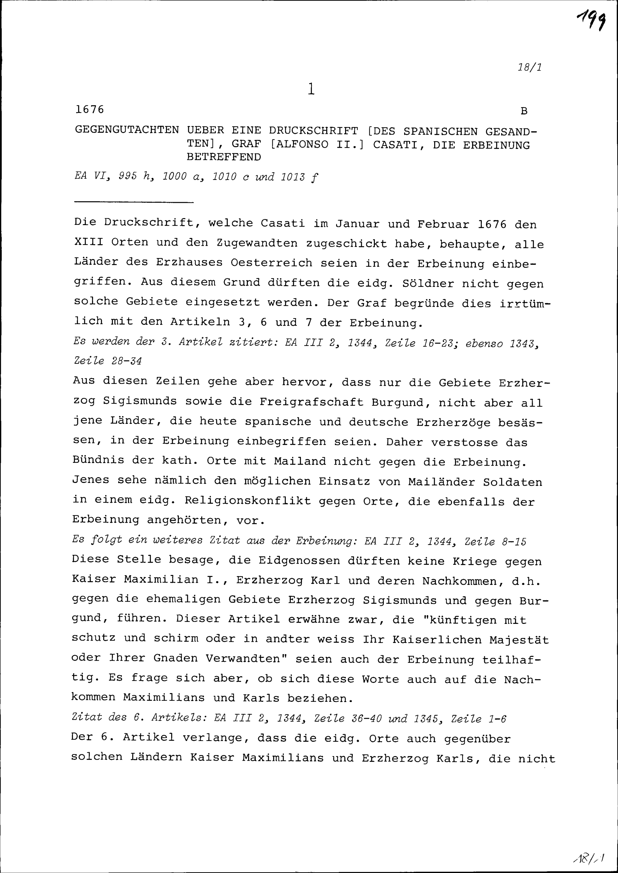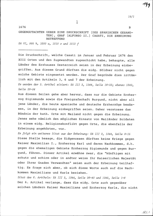 Gegengutachten über eine Druckschrift von Alfonso II. Casati, Graf und Gesandter von Spanien, die Erbeinung betreffend
