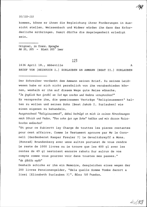 Schreiben von Heinrich I. Zurlauben an Beat II. Zurlauben, Ammann