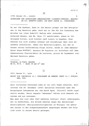 Schreiben von Lorenzo Verzuso, Marchese di Beretti, Ambassador von Spanien, an Beat Jakob II. Zurlauben
