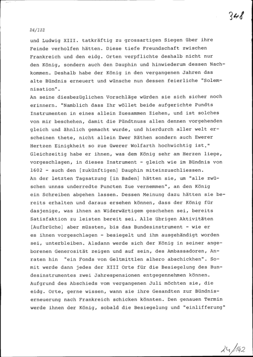 Entgegnungen von Jean de la Barde, Ambassador von Frankreich, auf die Bedenken der Eidgenössischen Orte wegen der französischen Bündniserneuerung