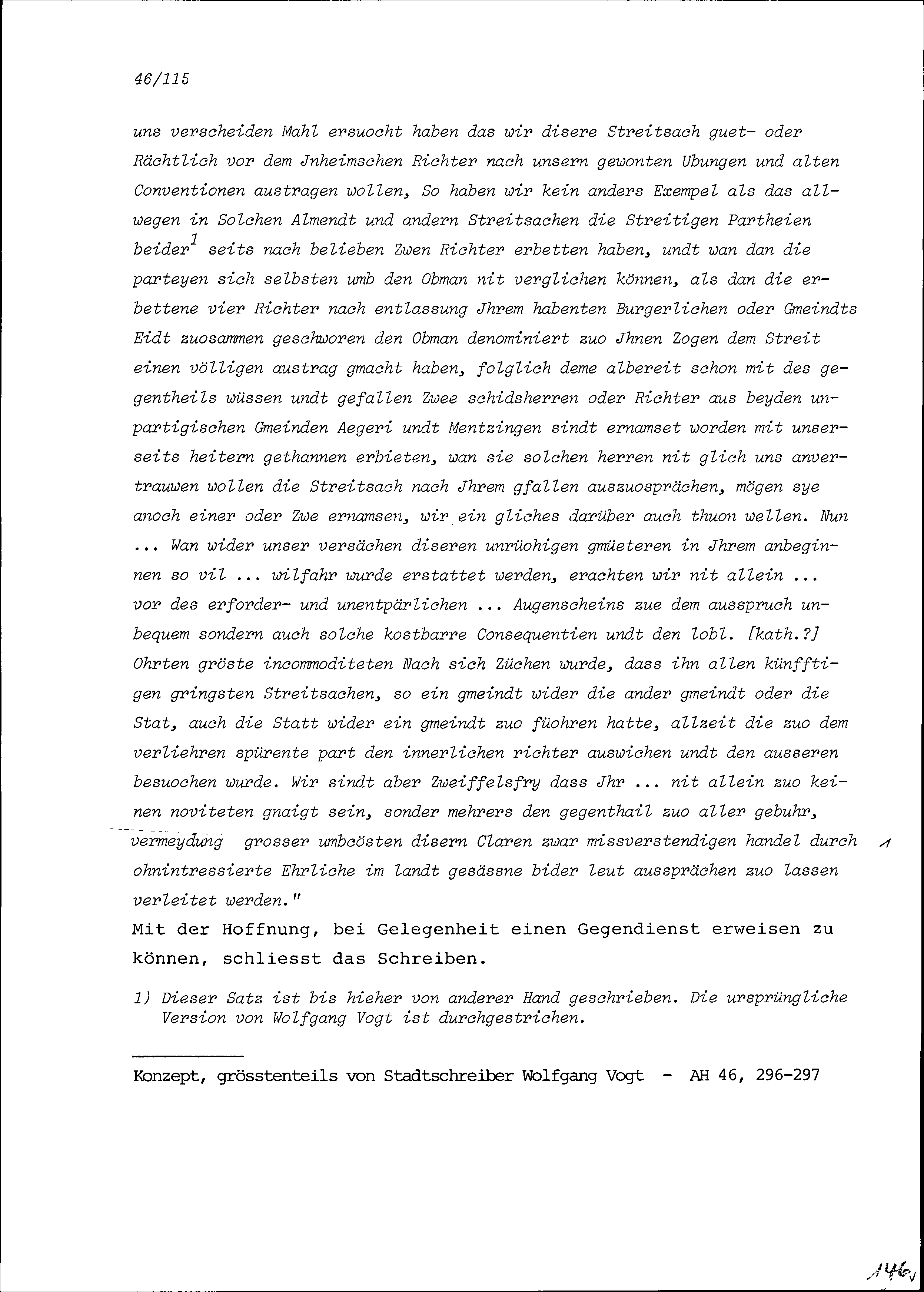 Schreiben des Ammanns (Stabführers) und Rats der Stadt Zug an Schultheiss und Rat...
