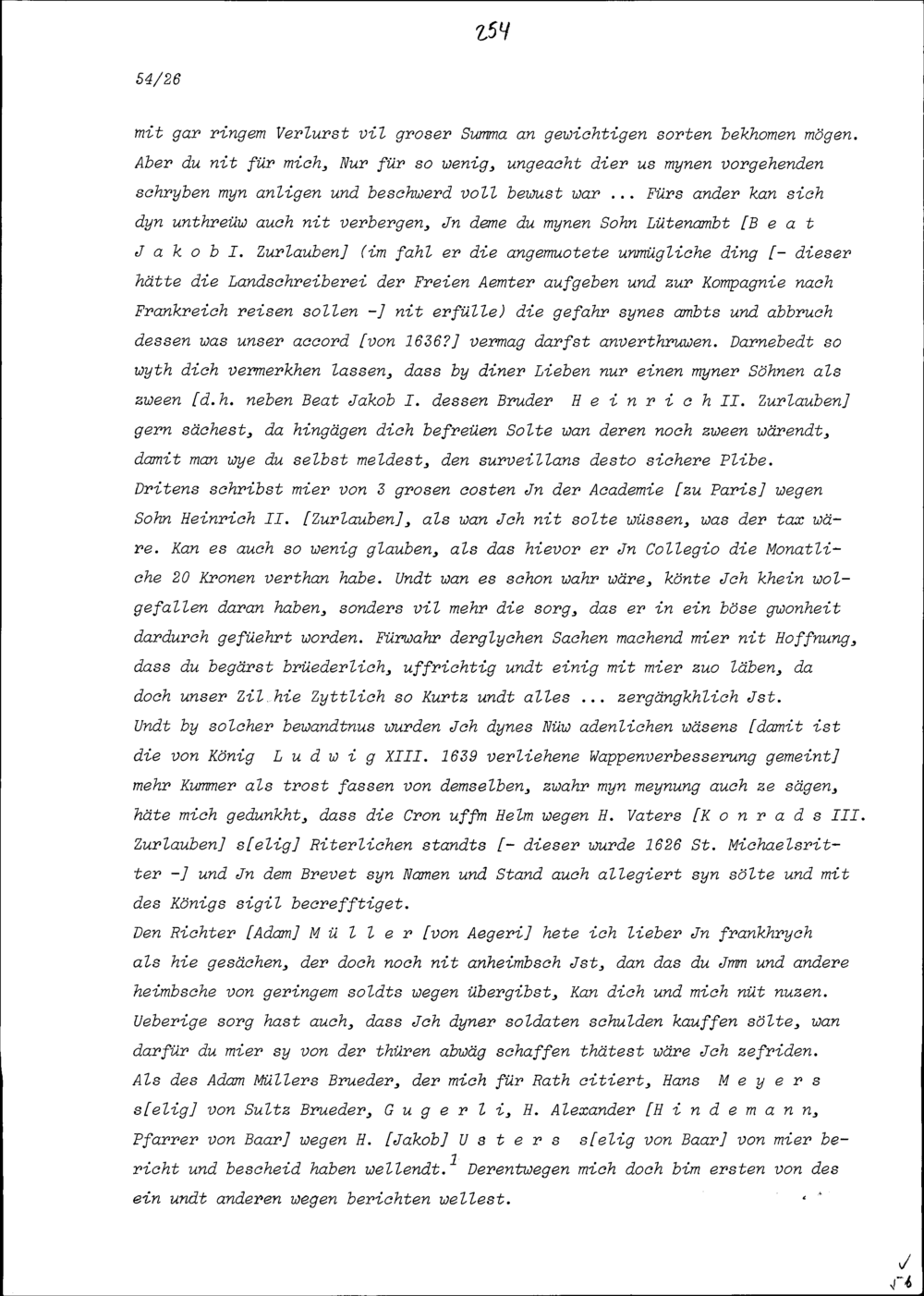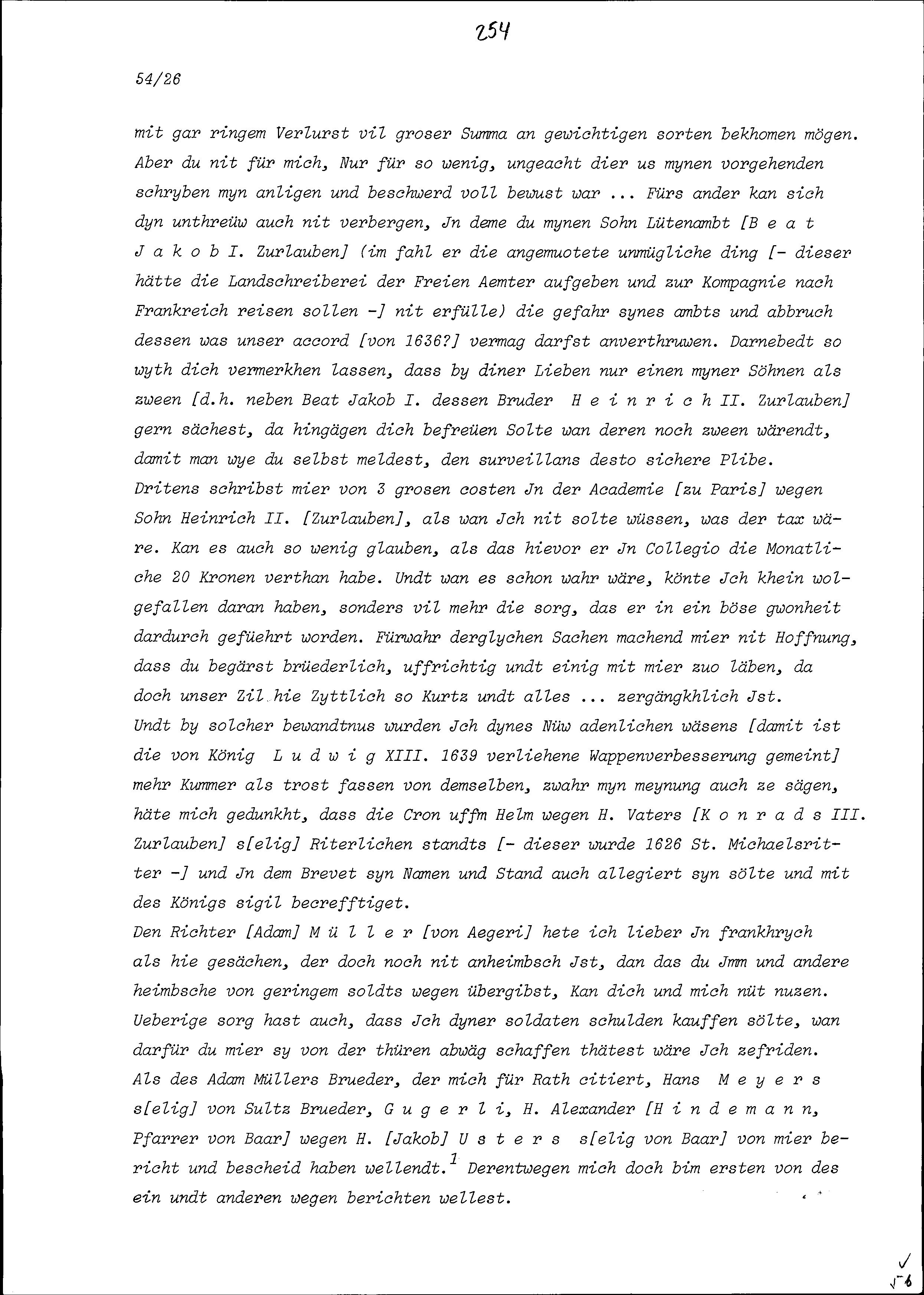 Schreiben von Beat II. Zurlauben an Heinrich I. Zurlauben, Gardehauptmann