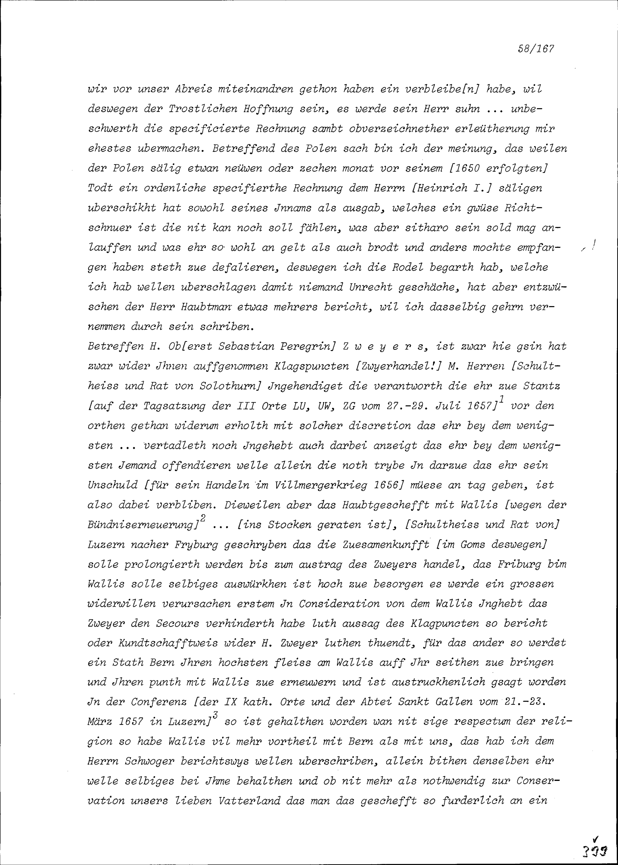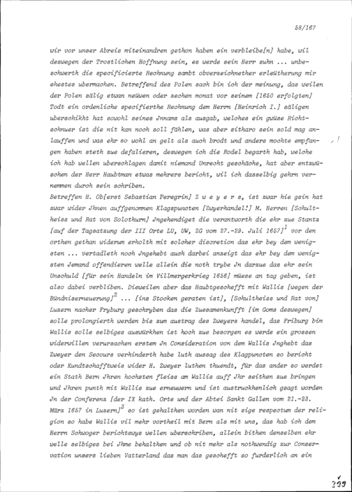 Schreiben von Hans Wilhelm von Steinbrugg an Beat II. Zurlauben, Altammann, Zug