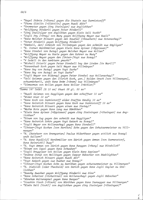 Talerzettelliste, erstellt von der Landschreiberei der Freien Ämter