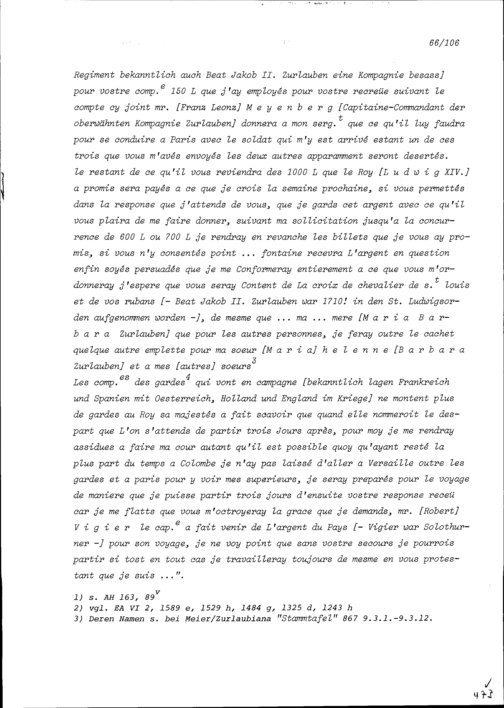 Schreiben von Beat Franz Plazidus Zurlauben, Gardehauptmann, an Beat Jakob II. Zurlauben,...