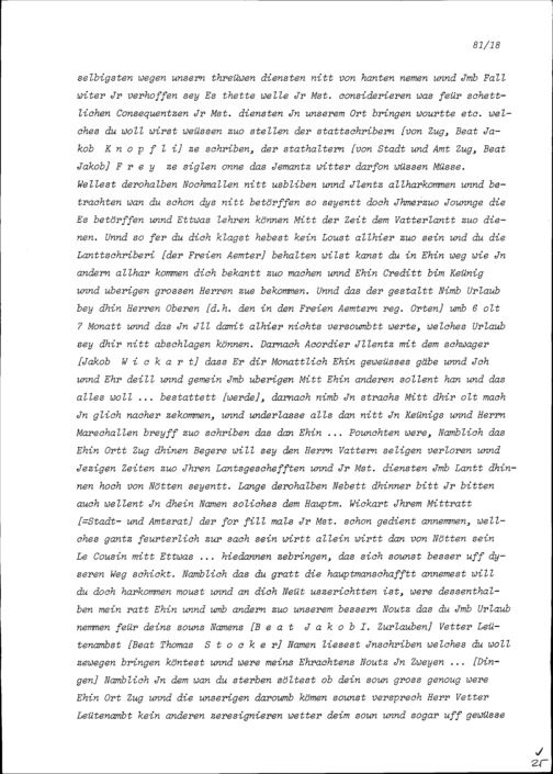 Schreiben von Heinrich I. Zurlauben, Gardefähnrich, an Beat II. Zurlauben, Landschreiber...