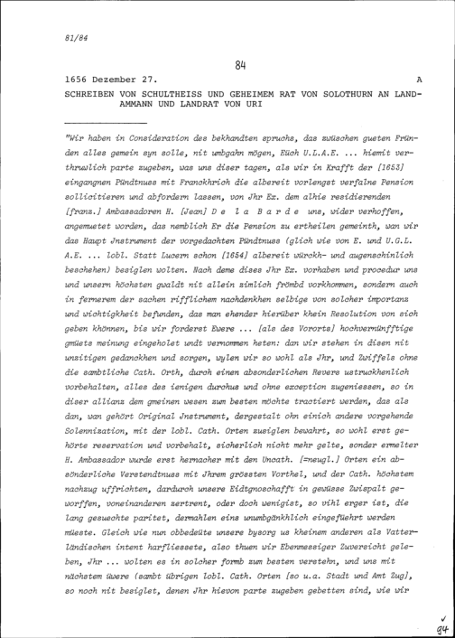 Schreiben des Schultheiss und Geheimen Rats Solothurn an Landammann und Landrat Uri