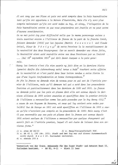 Bedenken der Sechs Katholischen Orte in Sachen Bündniserneuerung mit Frankreich und deren Widerlegung durch die französischen Ambassade