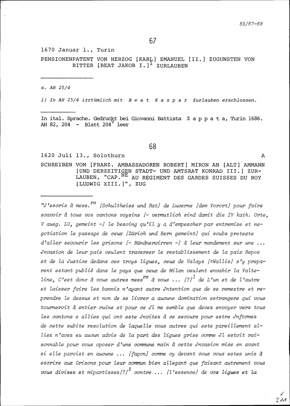Druck: Pensionenpatent von Karl Emanuel II., Herzog von Savoyen, zugunsten von Beat Jakob I. Zurlauben