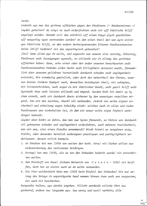 Bericht von Beat II. Zurlauben, Stadt- und Amtrat Zug