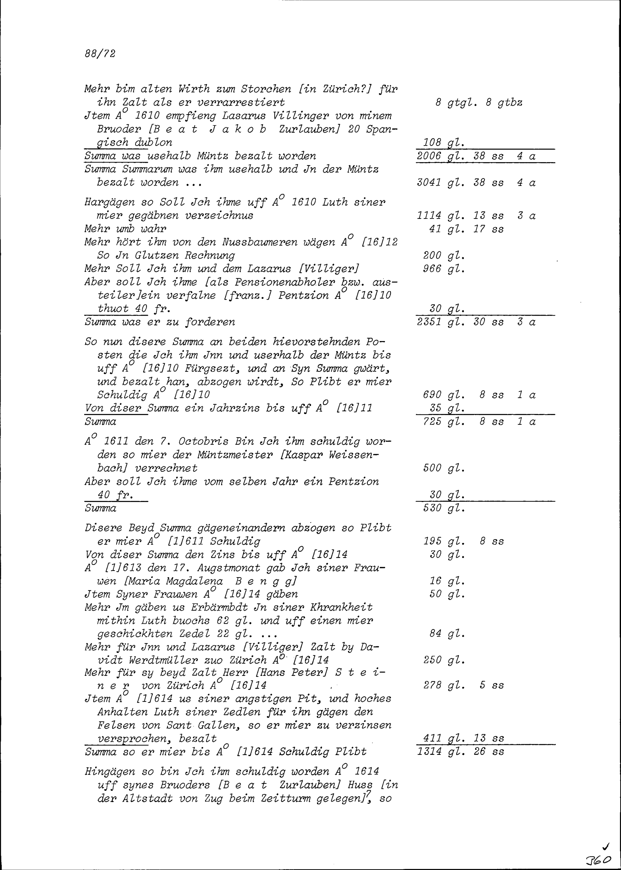 Abrechnung zwischen Konrad III. Zurlauben und Oswald II. Zurlauben