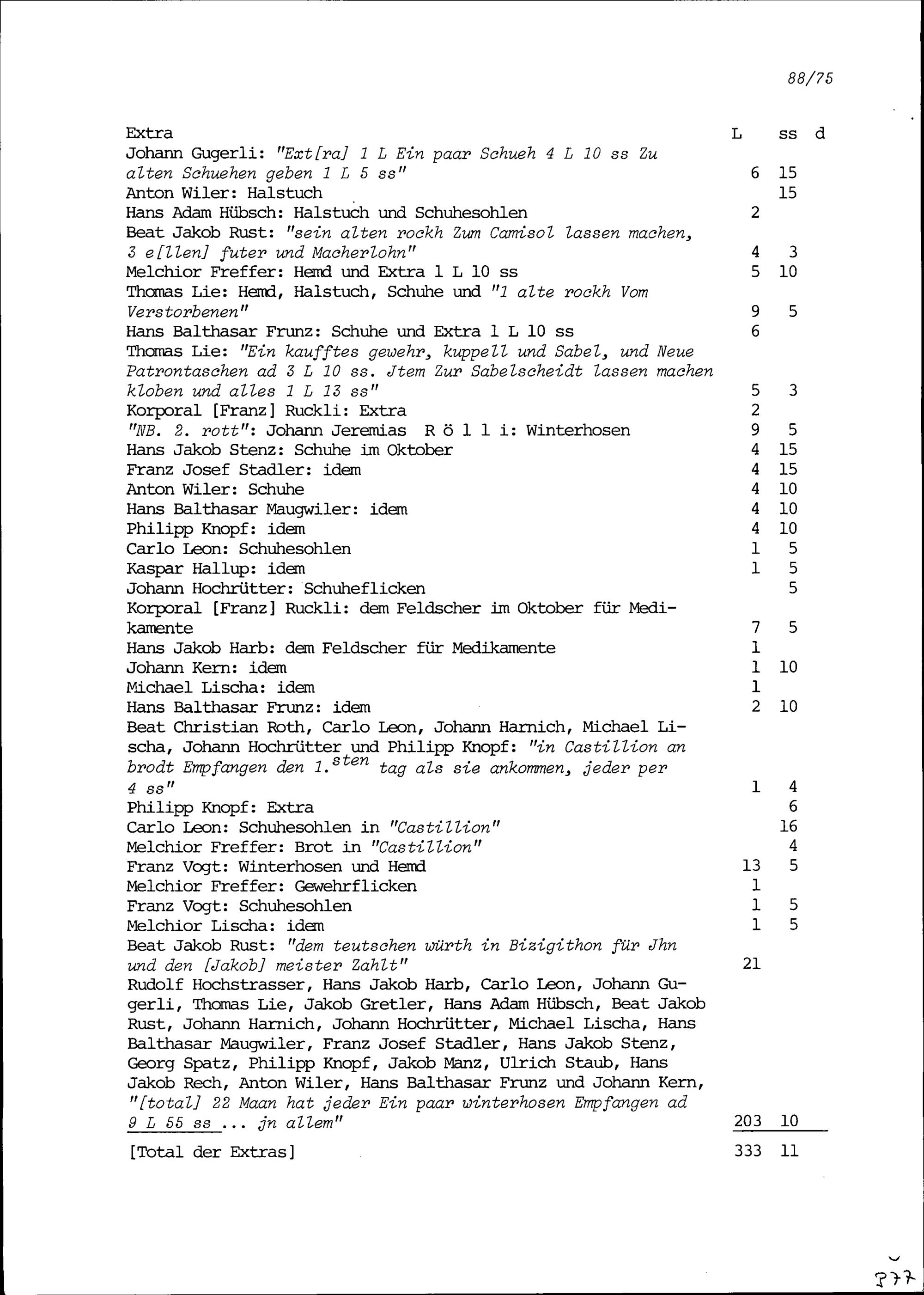 Mannschaftsrodel der Kompanie von Beat Jakob II. Zurlauben, Ammann Zug, und von Christoph Andermatt, Altammann, im Regiment Amrhyn in spanischen Diensten
