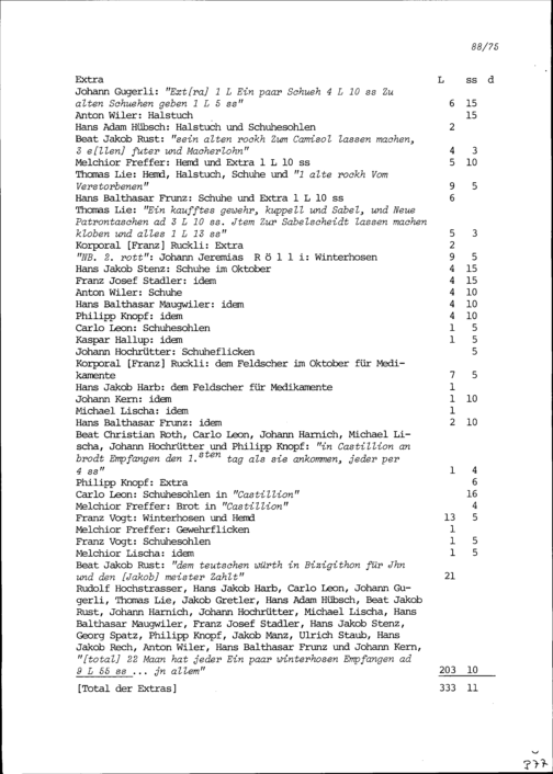 Mannschaftsrodel der Kompanie von Beat Jakob II. Zurlauben, Ammann Zug, und von Christoph...