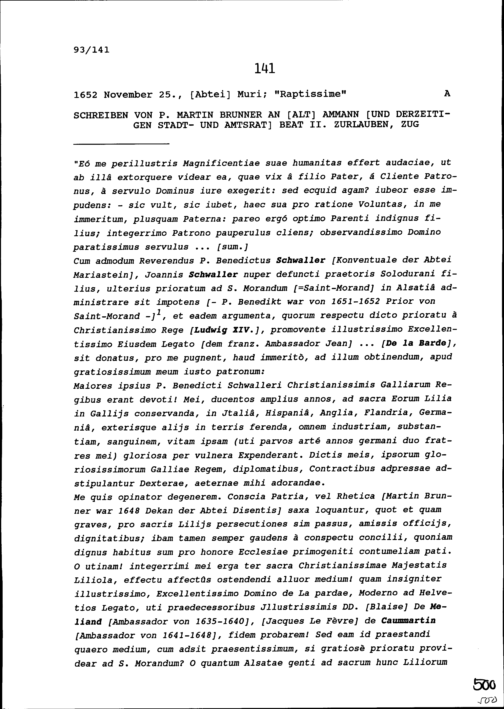 Schreiben von Martin Brunner, Benediktinerpater, an Beat II. Zurlauben, Altammann...