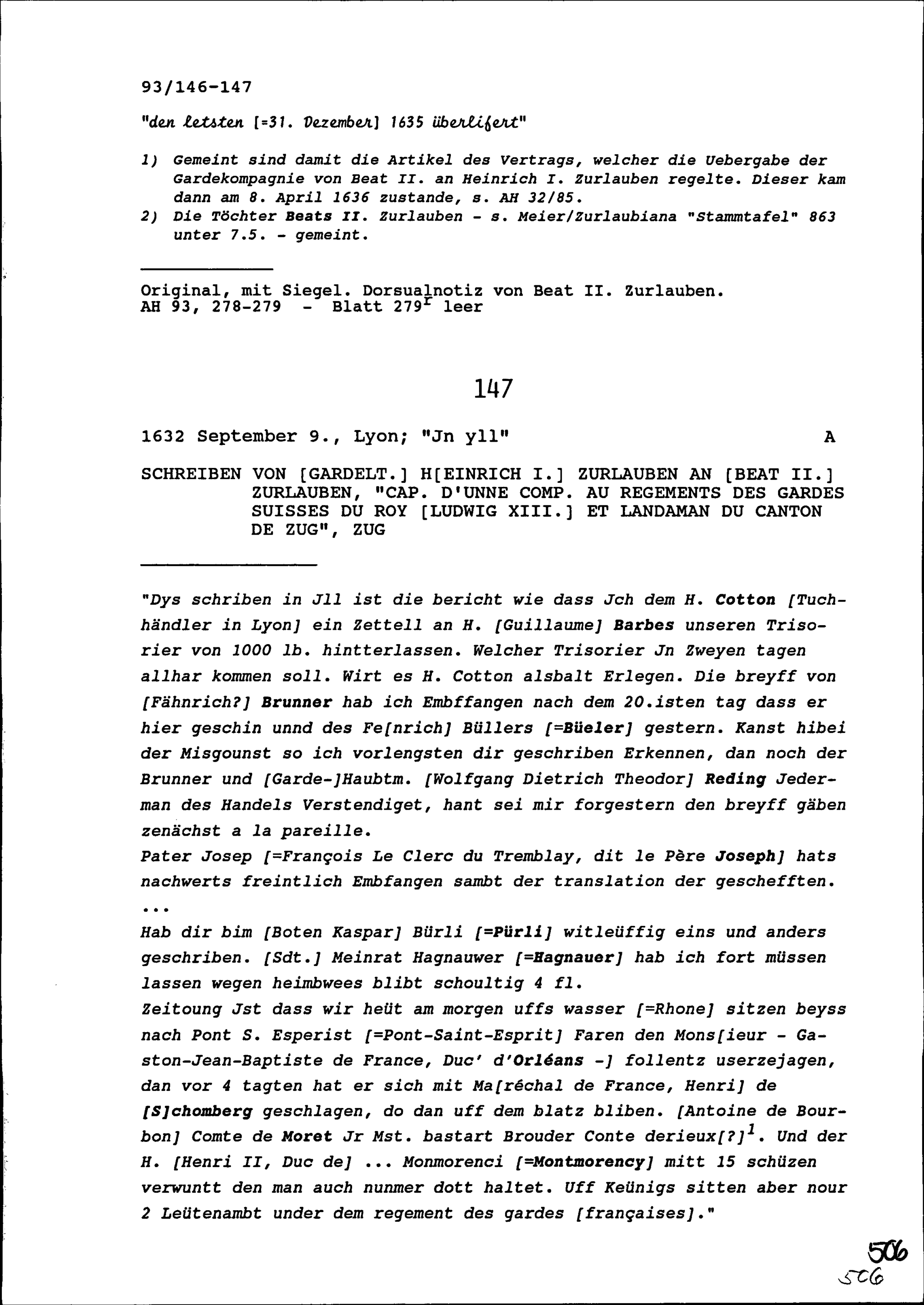 Schreiben von Heinrich I. Zurlauben, Gardeleutnant, an Beat II. Zurlauben, Ammann und Hauptmann, Zug