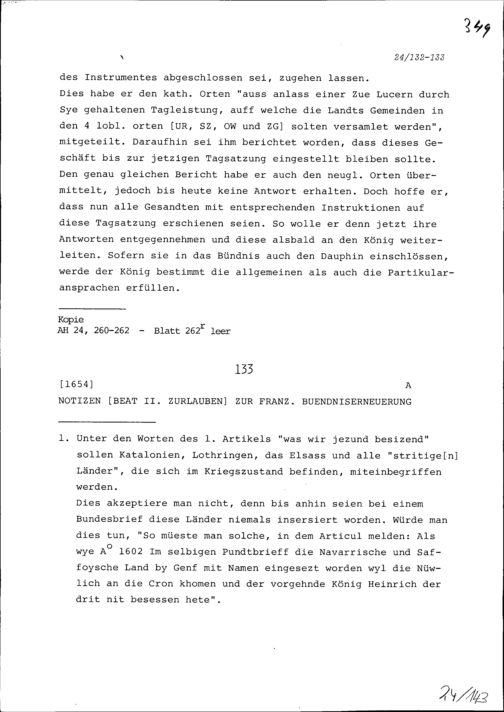 Entgegnungen von Jean de la Barde, Ambassador von Frankreich, auf die Bedenken der Eidgenössischen Orte wegen der französischen Bündniserneuerung