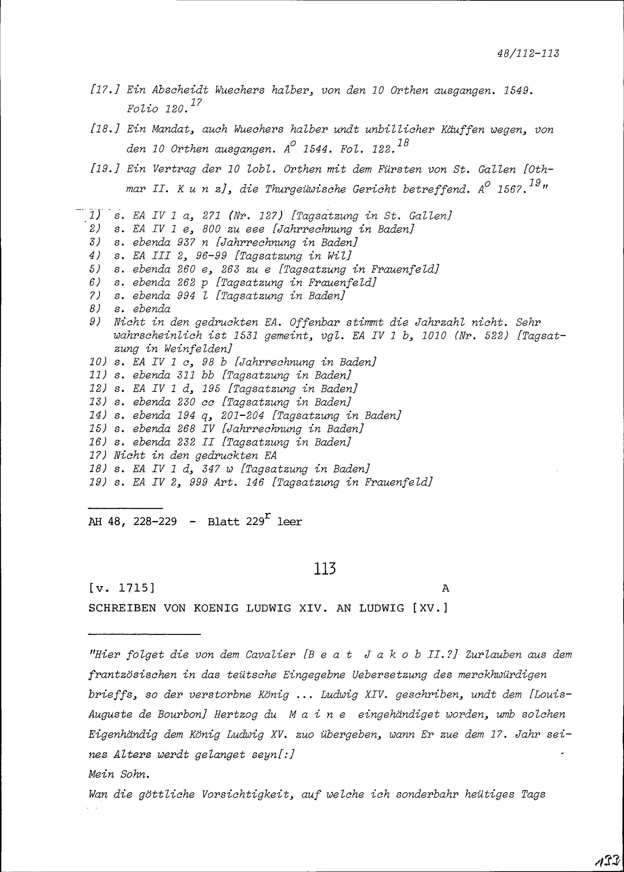 Thurgauer Landbuch betreffend die entsprechenden Abschiede der Zehn Orte, nämlich die Acht alten Orte sowie Freiburg und Solothurn