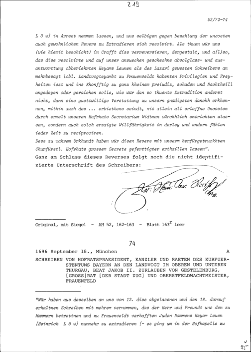 Reversbrief von Maximilian II. Emanuel, Kurfürst, an Beat Jakob II. Zurlauben, Landvogt im Thurgau