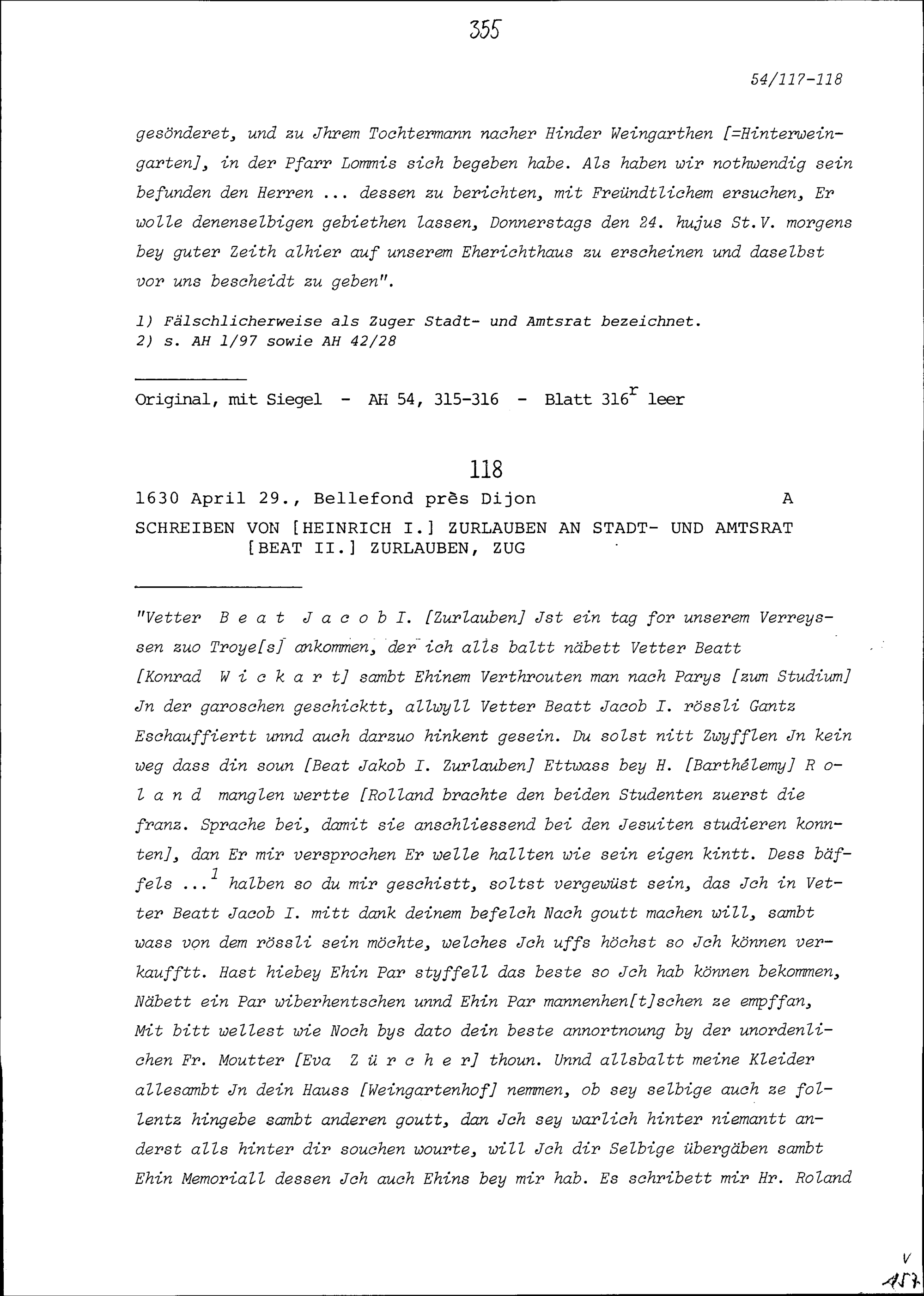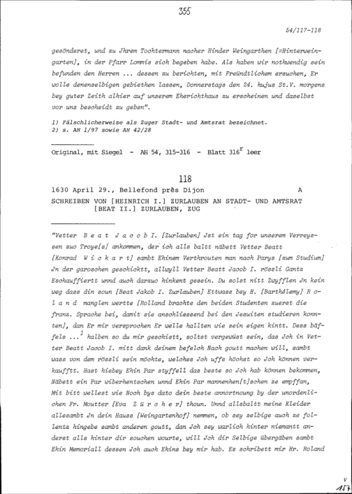 Schreiben des Statthalters und der Eherichter von Zürich an Beat Jakob II. Zurlauben,...