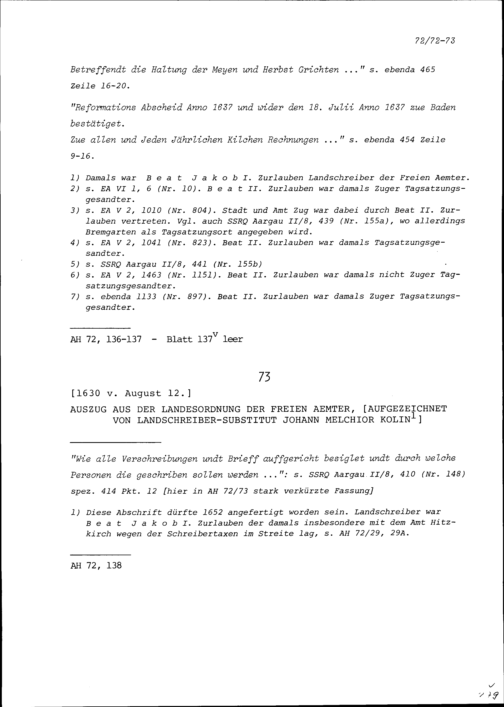 Auszüge aus verschiedenen Abschieden die Verwaltungsreform der Freien Ämter betreffend