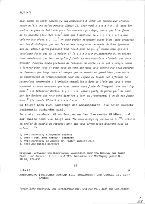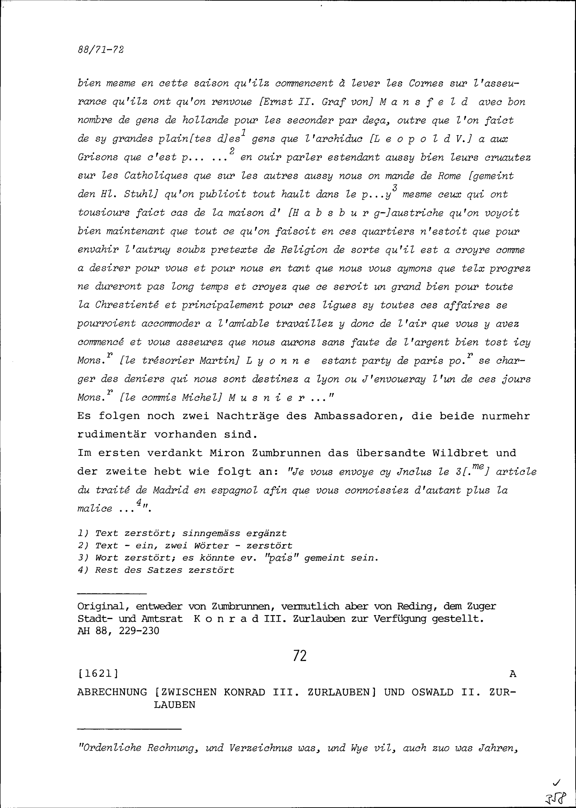 Schreiben von Robert Miron, Ambassador von Frankreich, an Johann Heinrich Zumbrunnen, Landammann von Uri, und an Heinrich Reding, Altlandammann und Ratsherr von Schwyz