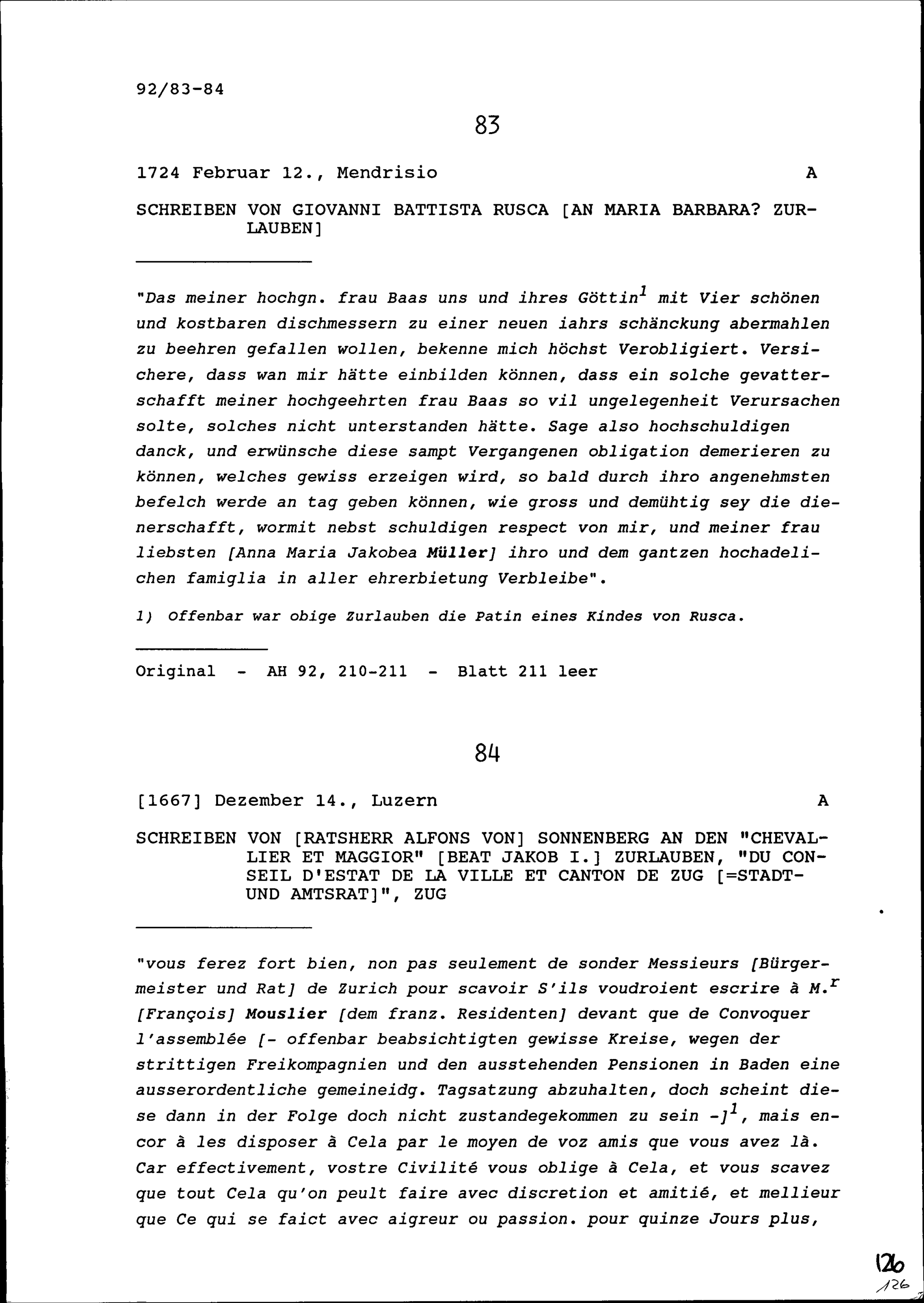 Schreiben von Alfons von Sonnenberg, Ratsherr, an Beat Jakob I. Zurlauben, Major und Stadt- und Amtrat, Zug