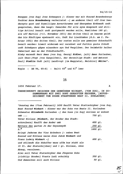 Vergleich zwischen den Erben von Konrad Brandenberg, Statthalter, einerseits und...