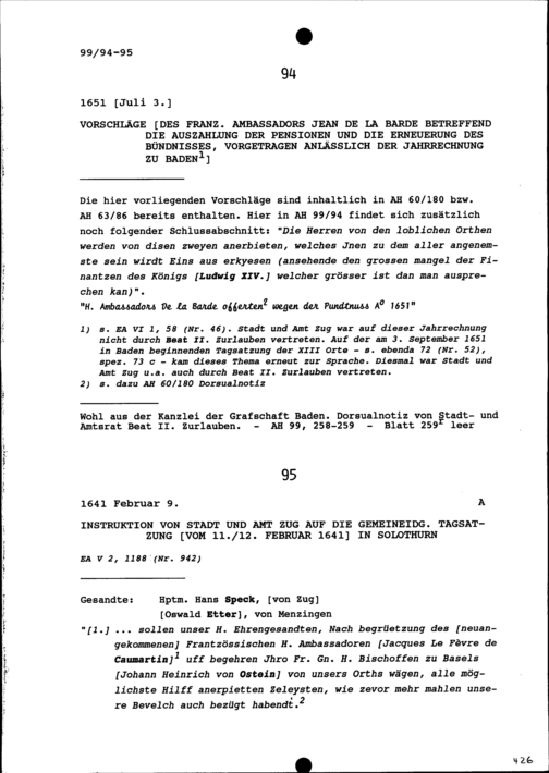 Instruktion von Stadt und Amt Zug auf die Tagsatzung vom 11. und 12. Februar 1641 in Solothurn