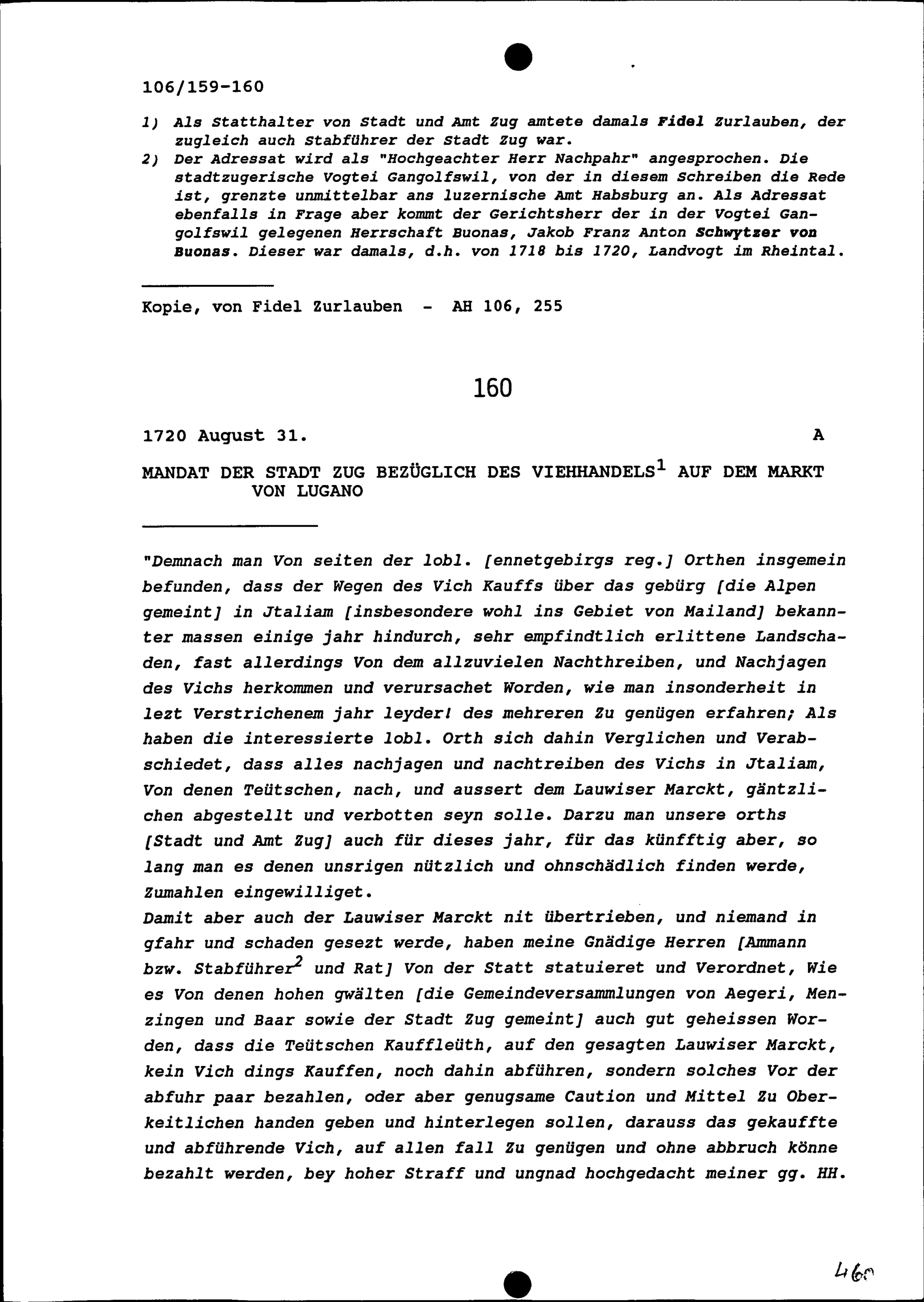 Schreiben des Statthalters und Rats der Stadt Zug an Johann Rudolf Meyer von Baldegg, Landvogt des Amts Habsburg