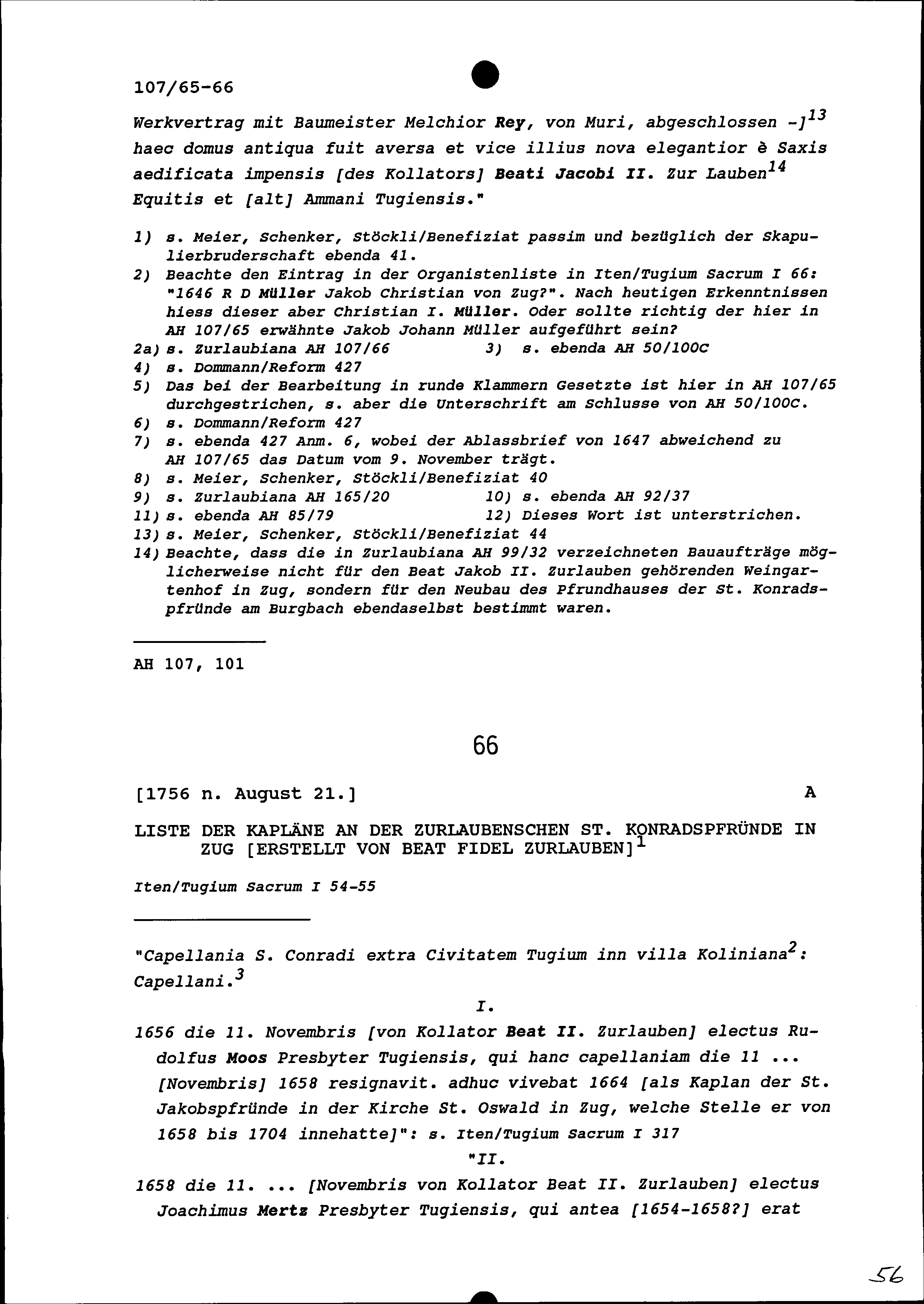 Notiz von Beat Fidel Zurlauben über die Skapulierbruderschaft in Zug und die zurlaubensche Sankt Konradspfrund
