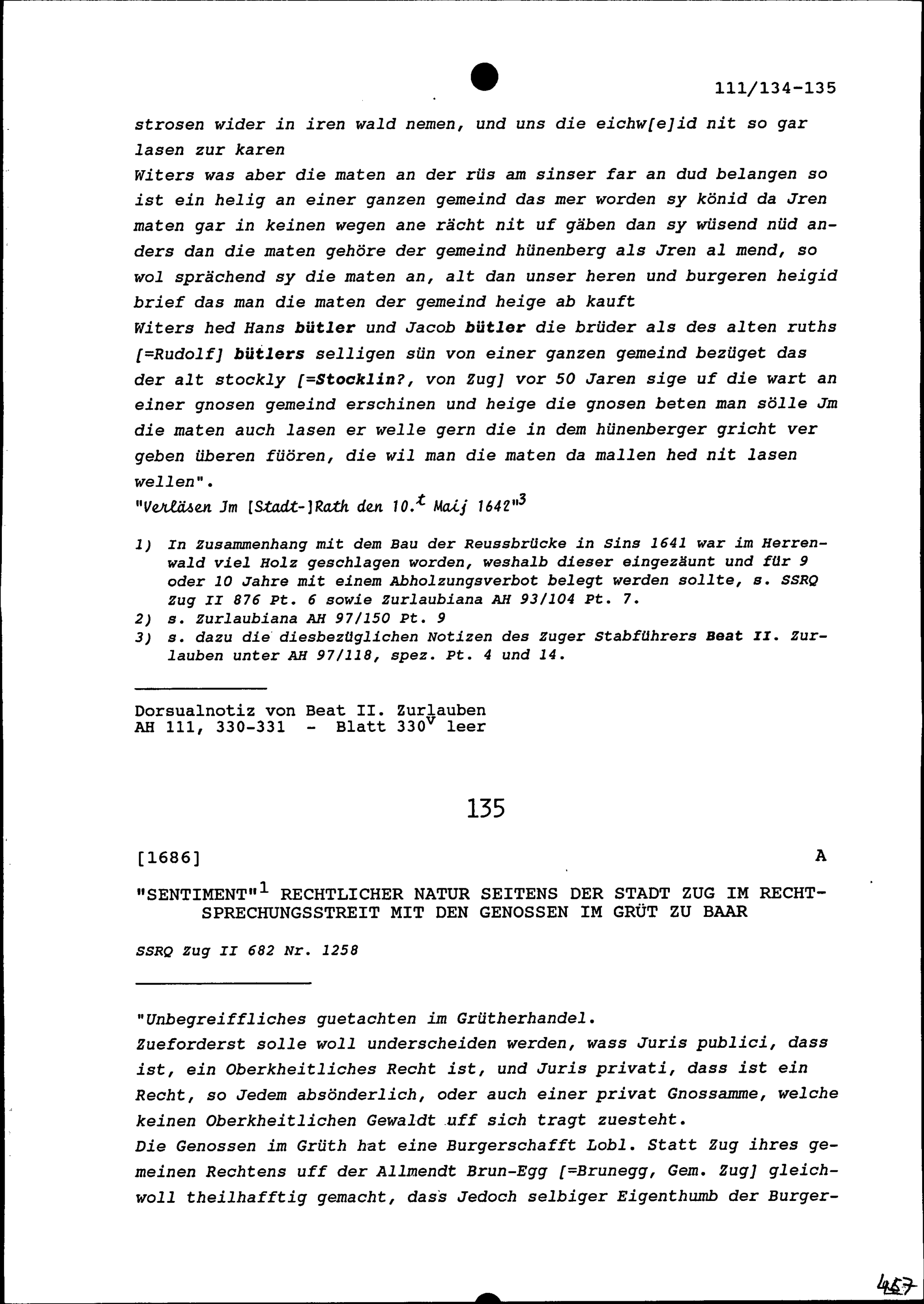 Beschlüsse der Gemeindeversammlung von Hünenberg in ihrem Streit mit der Stadt Zug um den Herrenwald und eine Matte am Fahr