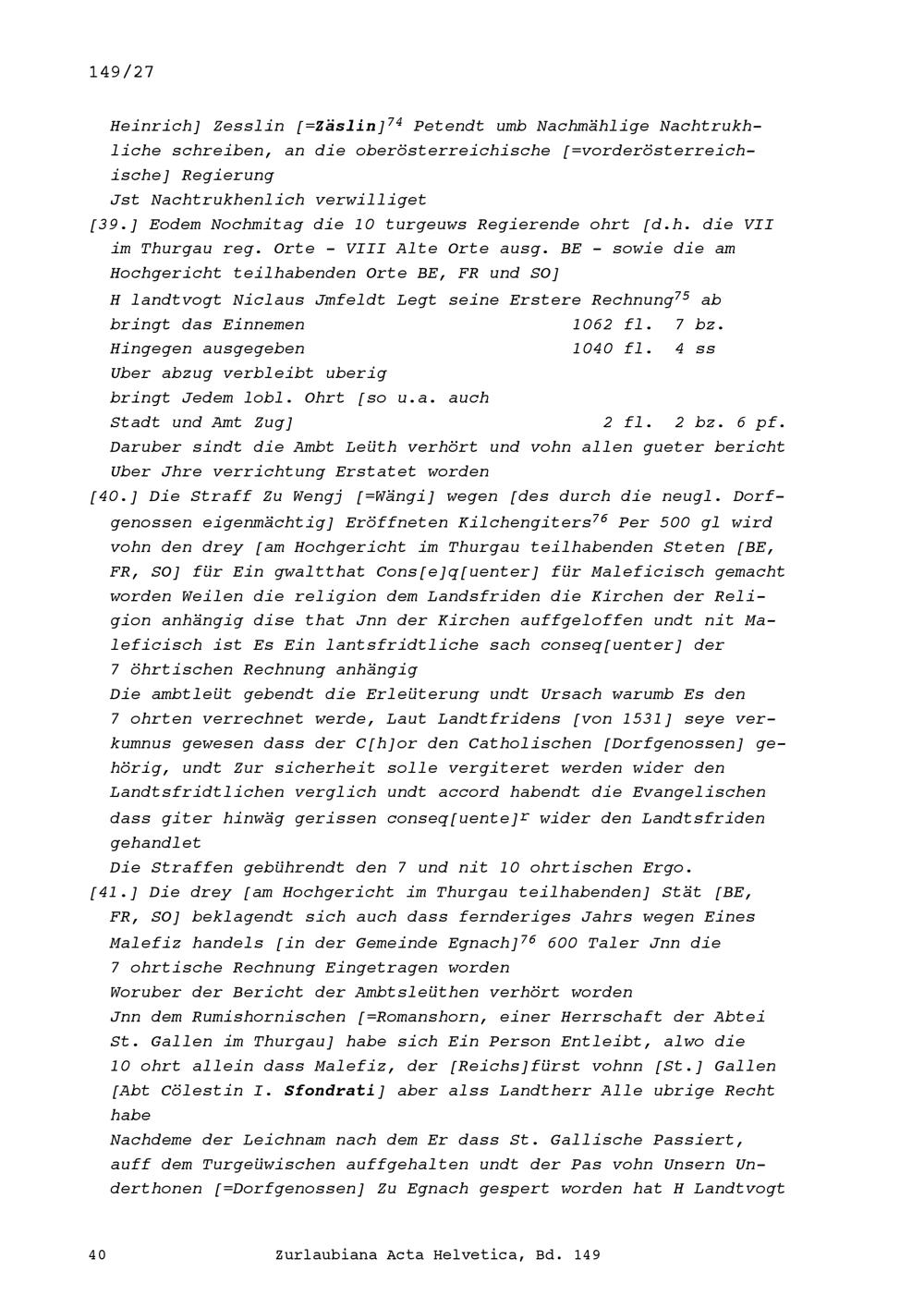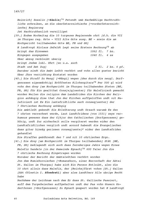 Notiz von Beat Kaspar Zurlauben, Tagsatzungsgesandter von Stadt und Amt Zug, über die am 4. Juli 1695 in Baden begonnene Jahrrechnung