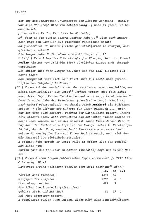 Notiz von Beat Kaspar Zurlauben, Tagsatzungsgesandter von Stadt und Amt Zug, über die am 4. Juli 1695 in Baden begonnene Jahrrechnung