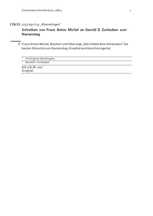 Schreiben von Franz Anton Michel an Gerold II. Zurlauben zum Namenstag