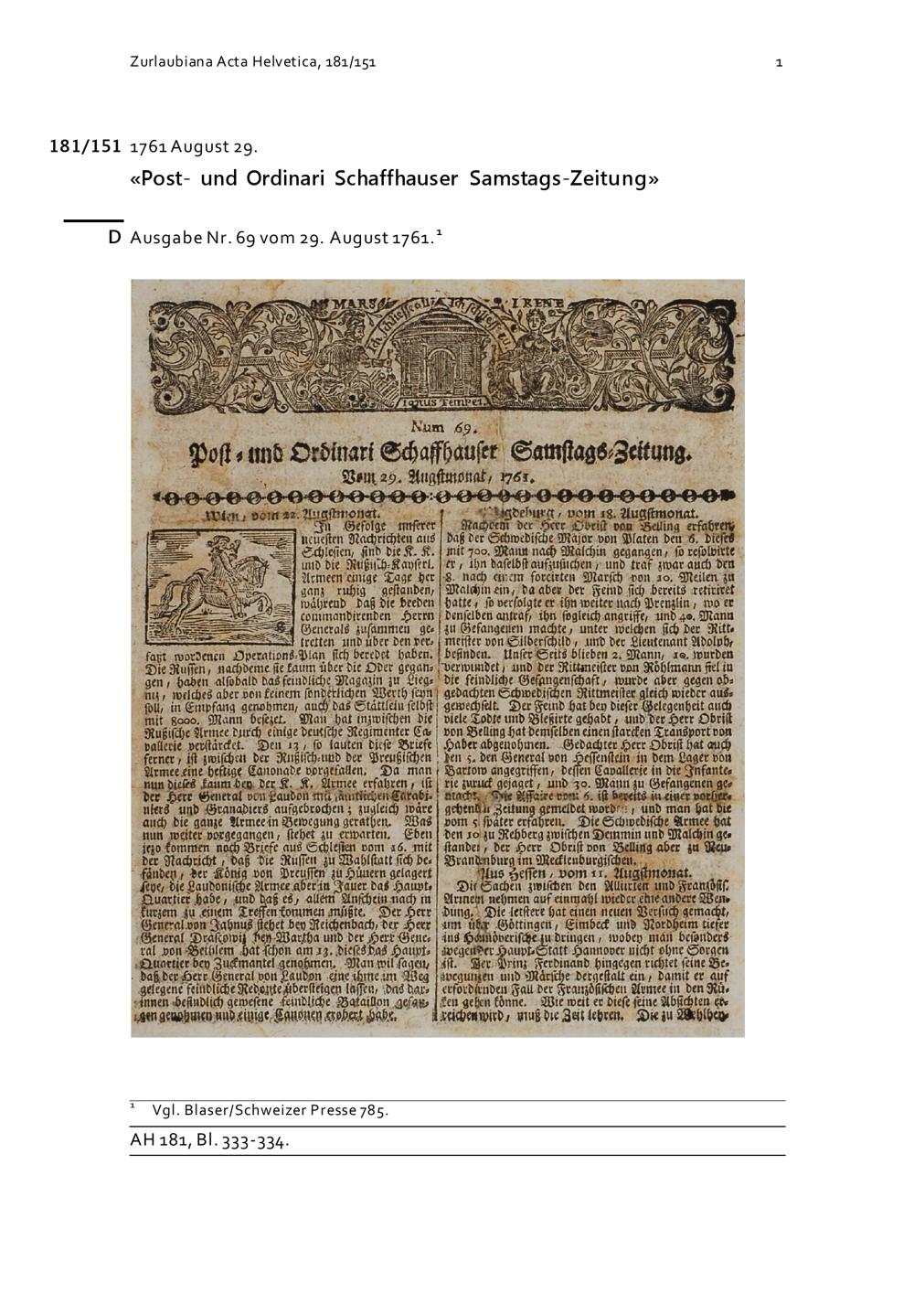 Zeitung: Post- und Ordinari Schaffhauser Samstags-Zeitung