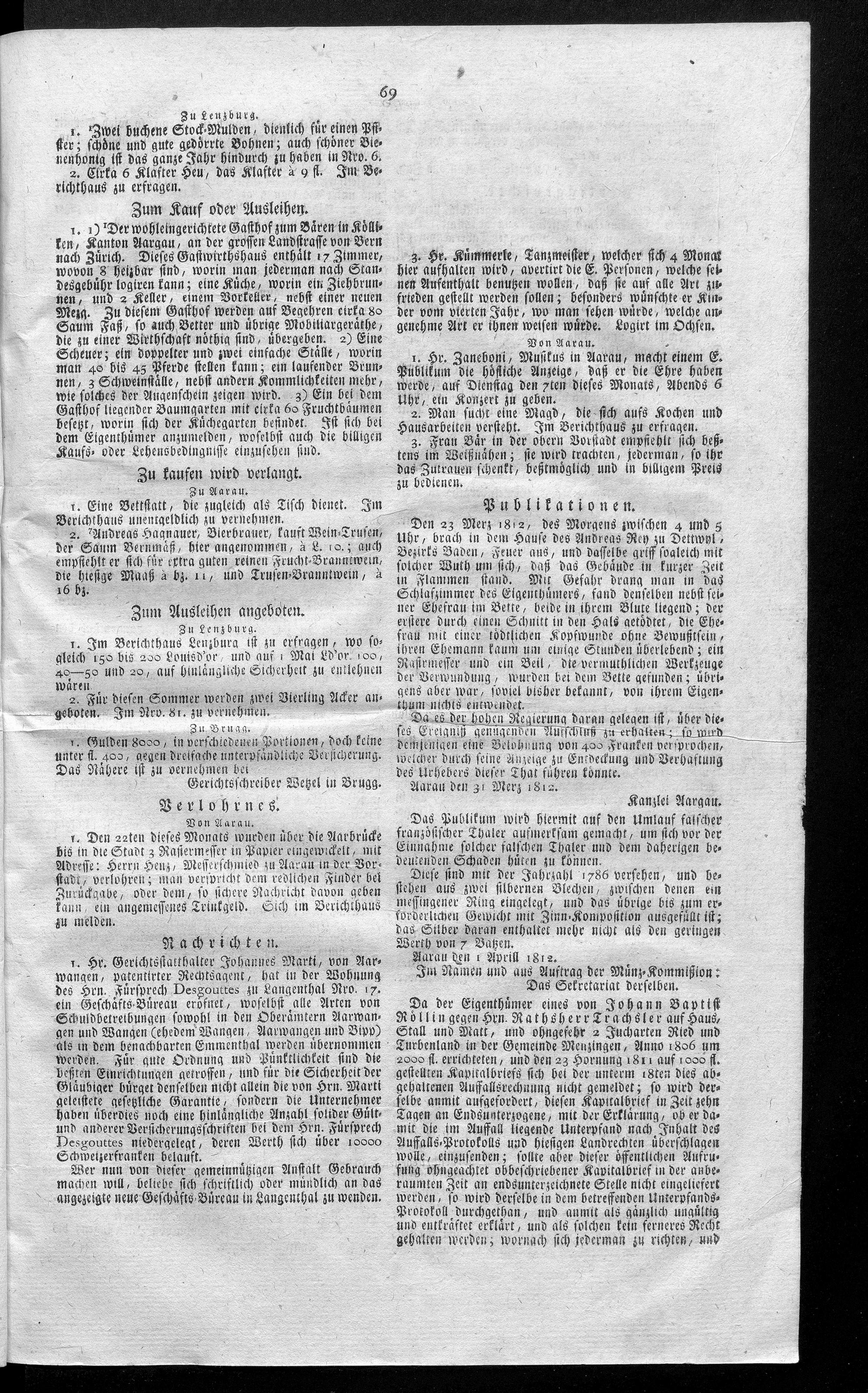 Hochobrigkeitlich privilegirtes Aargauisches Intelligenz-Blatt