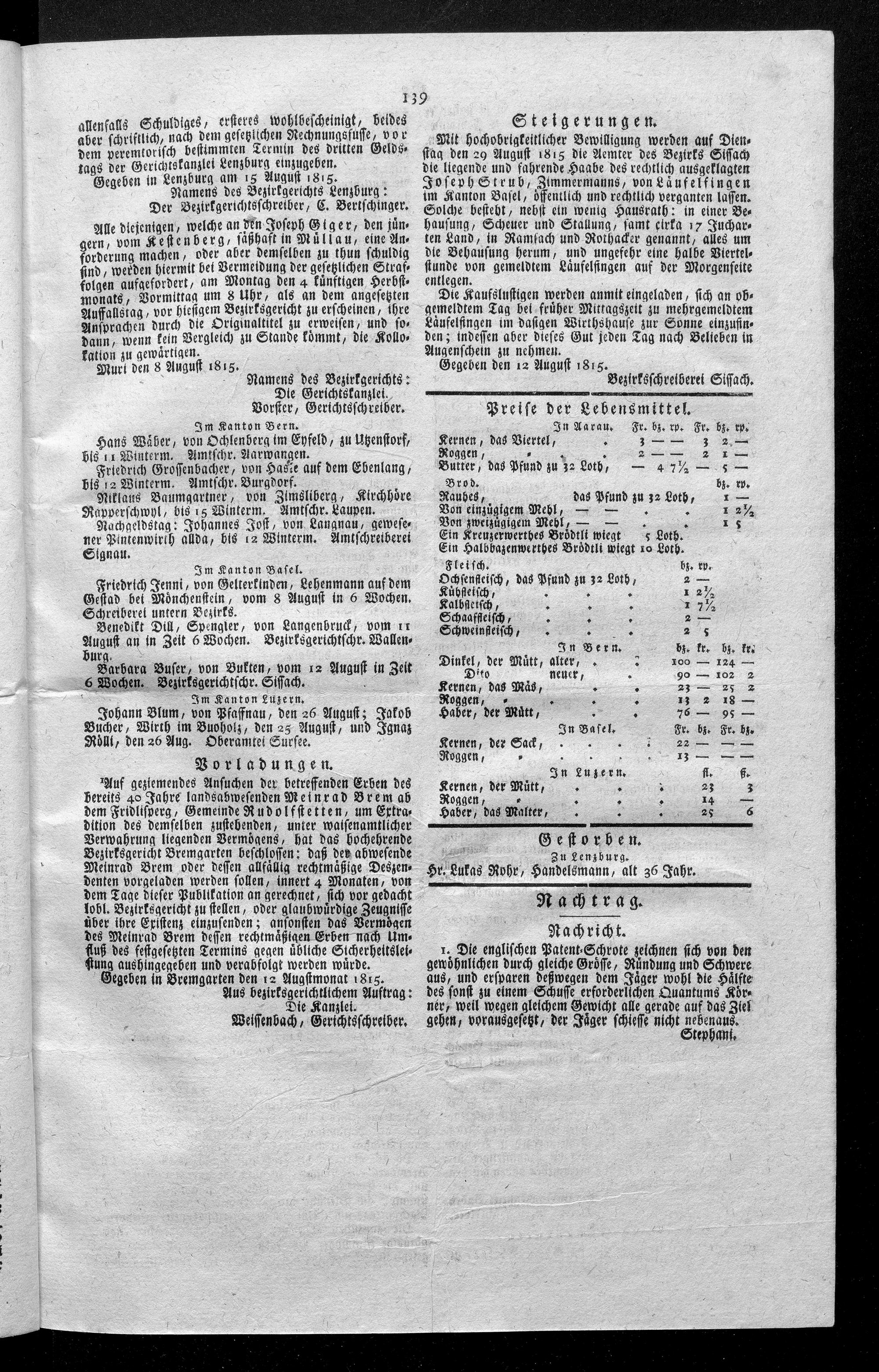 Hochobrigkeitlich privilegirtes Aargauisches Intelligenz-Blatt