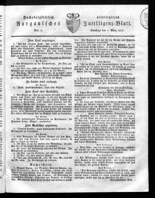 Hochobrigkeitlich privilegirtes Aargauisches Intelligenz-Blatt