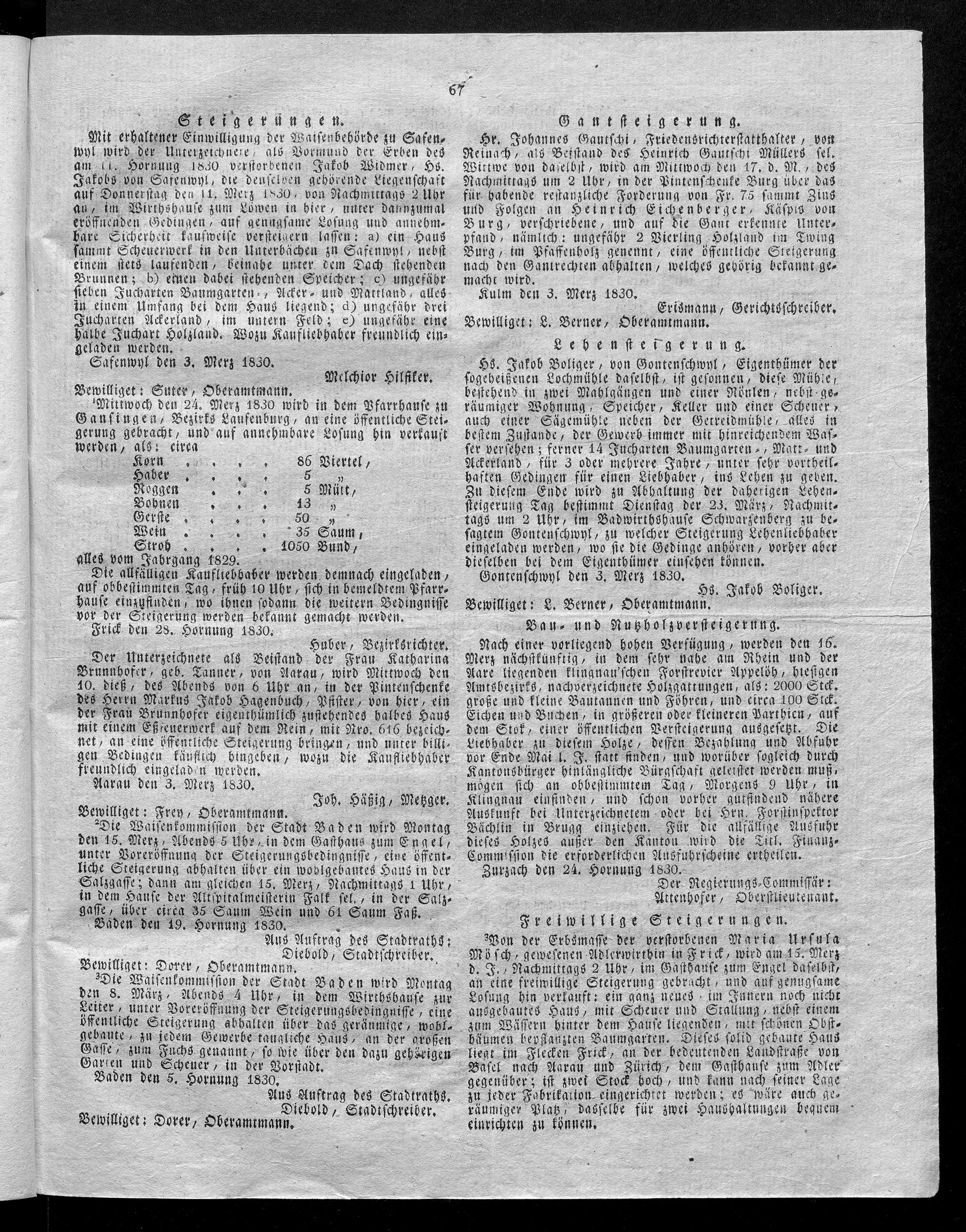 Hochobrigkeitlich privilegirtes Aargauisches Intelligenz-Blatt