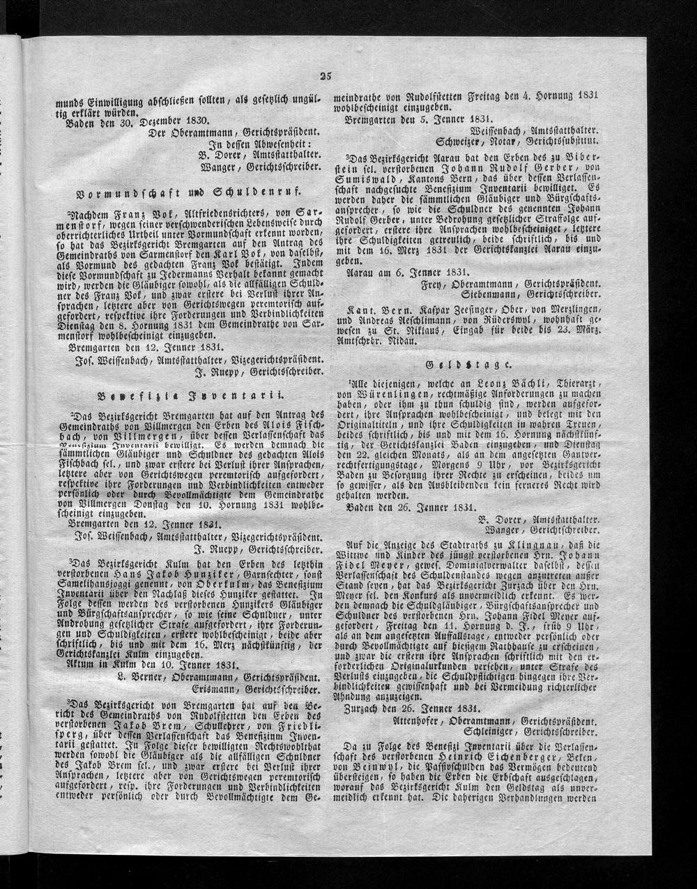Hochobrigkeitlich privilegirtes Aargauisches Intelligenz-Blatt