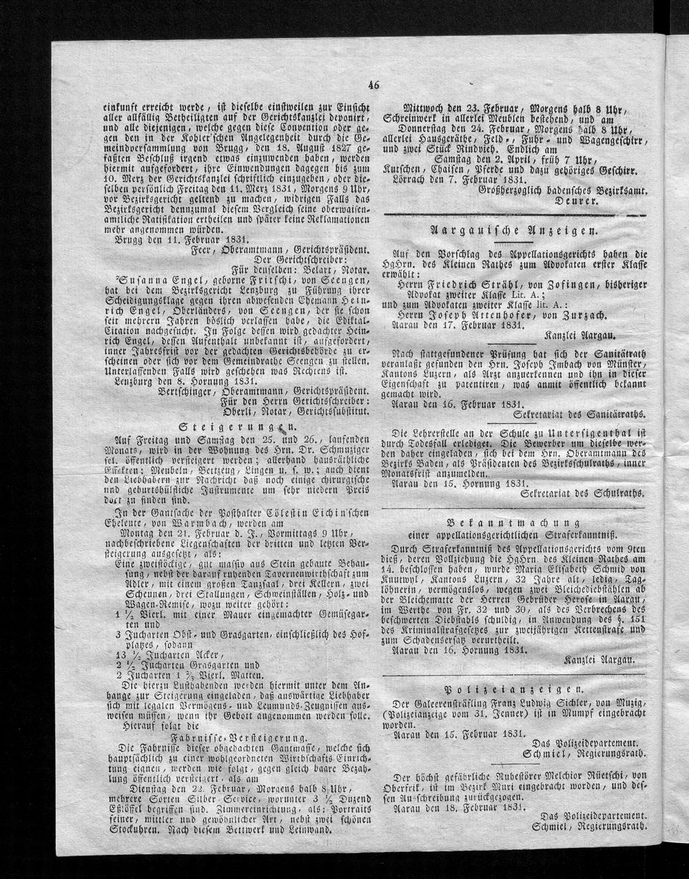 Hochobrigkeitlich privilegirtes Aargauisches Intelligenz-Blatt