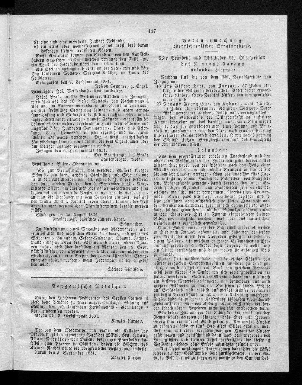 Hochobrigkeitlich privilegirtes Aargauisches Intelligenz-Blatt