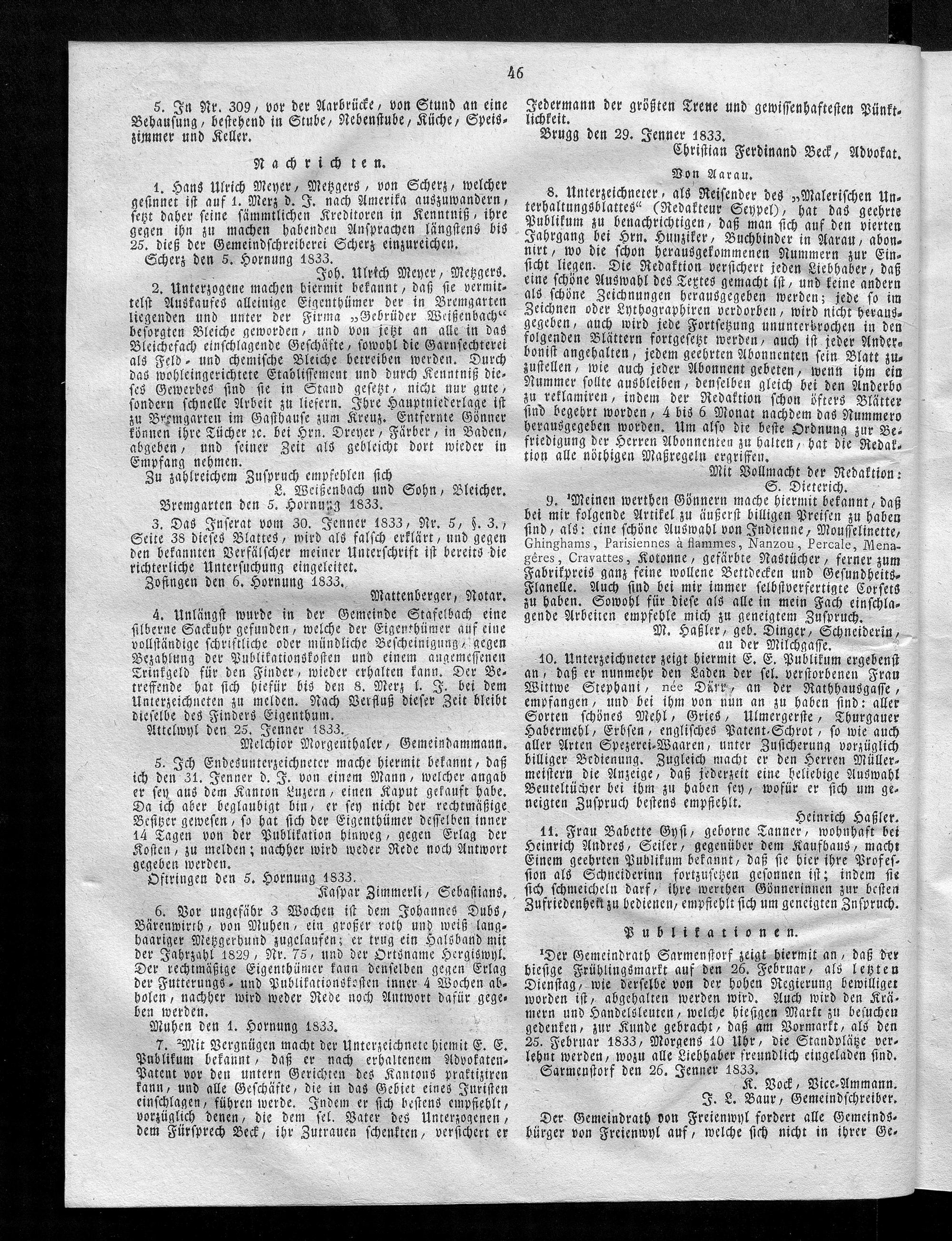 Hochobrigkeitlich privilegirtes Aargauisches Intelligenz-Blatt