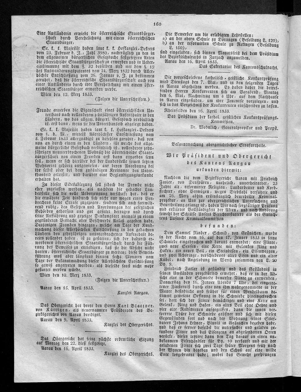 Hochobrigkeitlich privilegirtes Aargauisches Intelligenz-Blatt